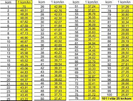 CIJENA KOMADA - SETA