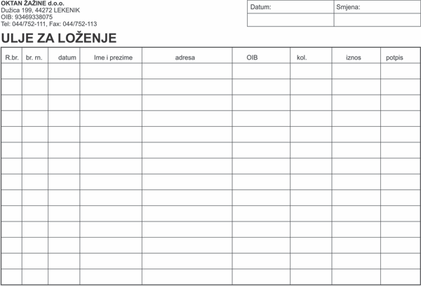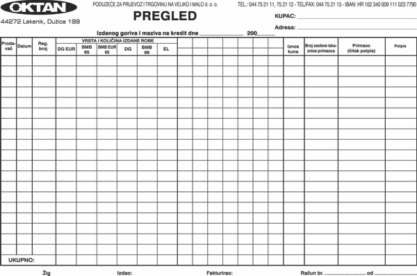 0007 – OKTAN ŽAŽINE d.o.o. – 033-Pregled izdanog goriva i maziva