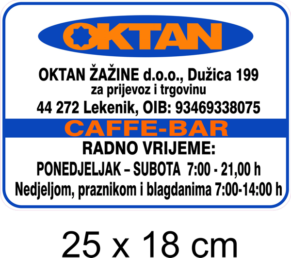 0007 – OKTAN ŽAŽINE d.o.o. – 023-POZOR-obavezno uzeti račun – 105×70 mm
