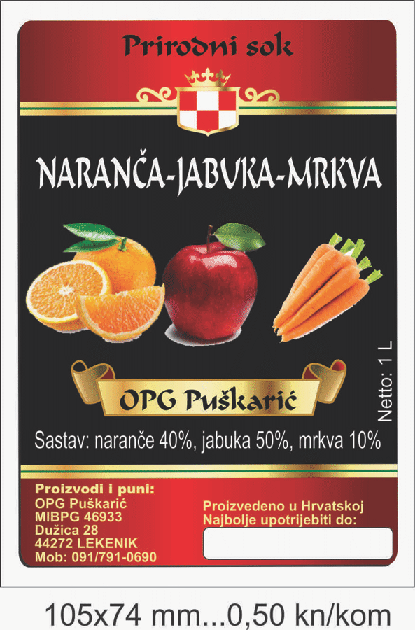 1396 – OPG Puškarić – 022-sok naranča, jabuka, mrkva 105×74 mm