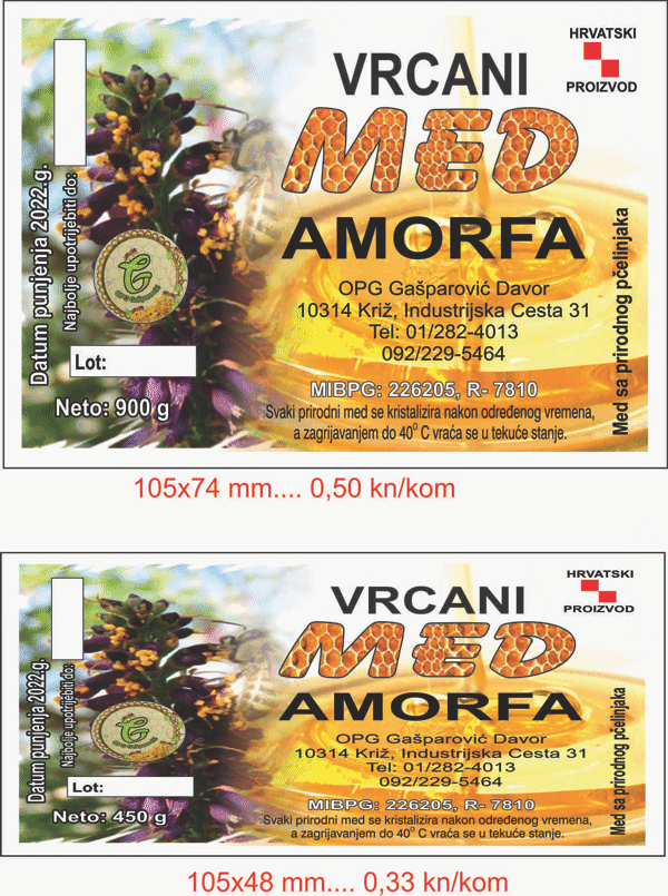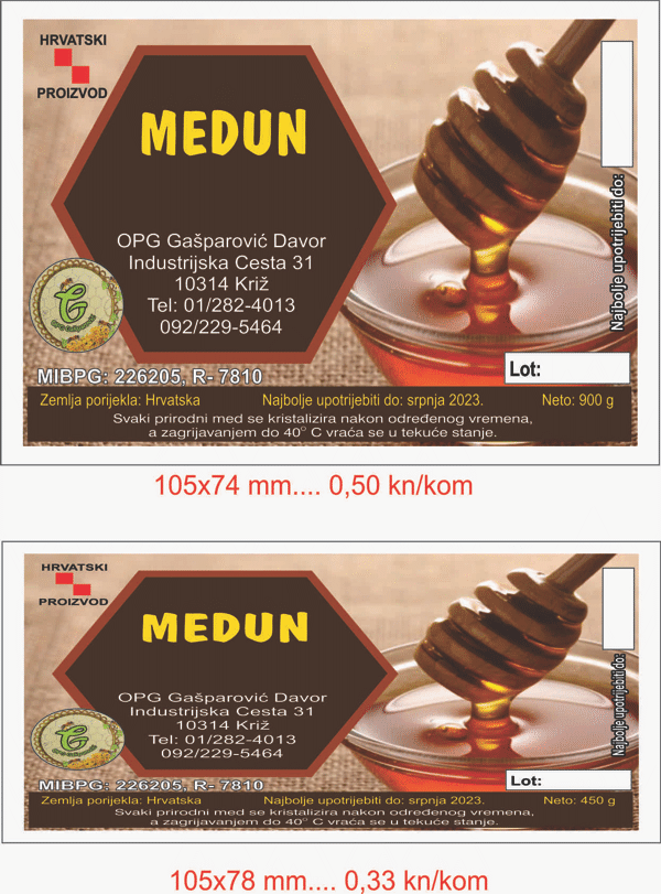 2318 – OPG Gašparović Davor – 012-MED LIPA- 105×74 i 105×48 mm papirnate