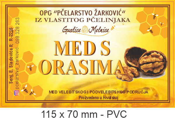 1541- Pčelarstvo Žarković – 021-med s ORASIMA – 115×70 mm – PVC