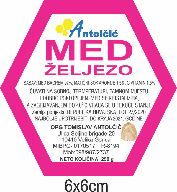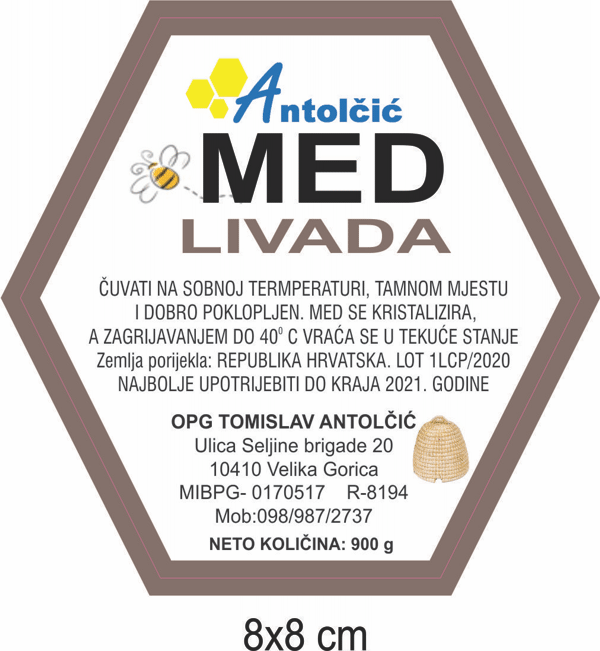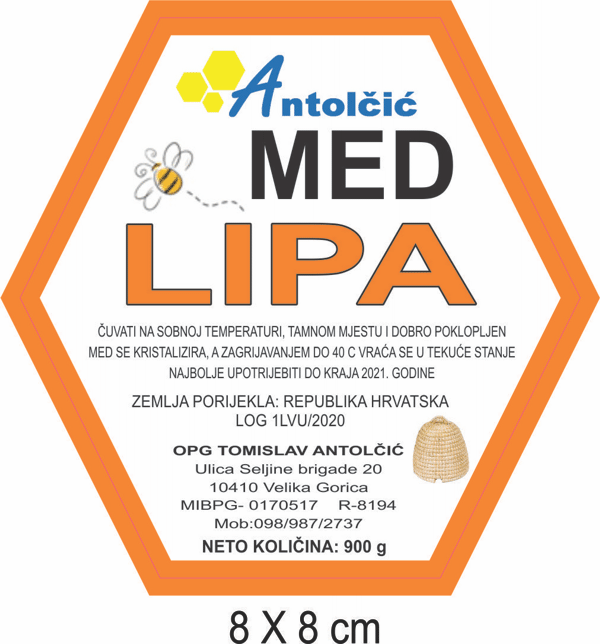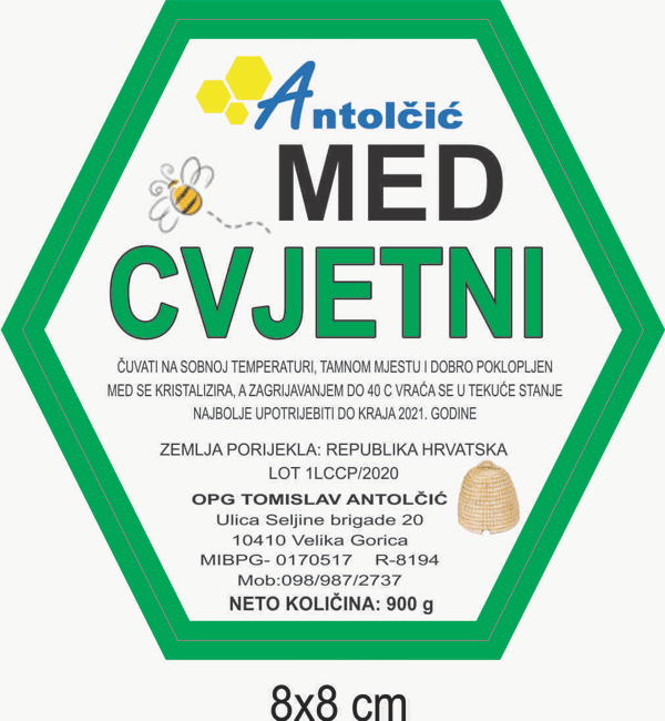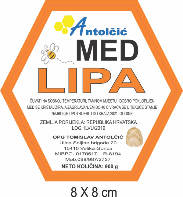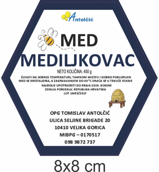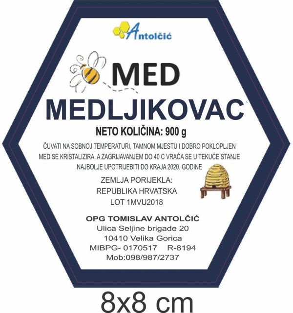 1596 – Antolčić Tomislav – 050-med MEDLJIKOVAC 900 g – 8×8 cm