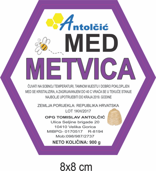 1596 – Antolčić Tomislav – 006-med METVICA 900 gr – 8×8 cm