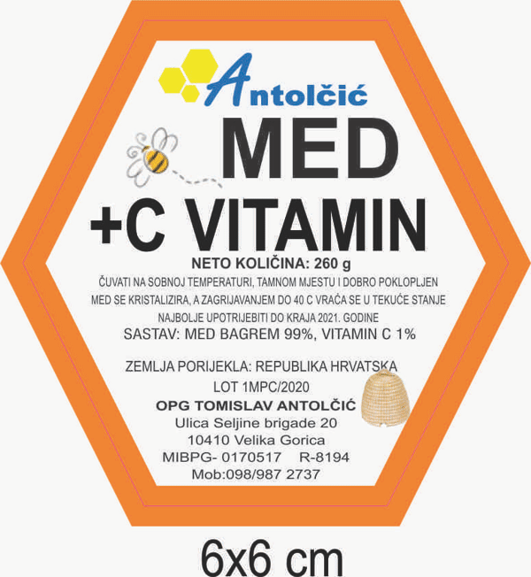 1596 – Antolčić Tomislav – 054-med c vitamini 260 g – 6×6 cm