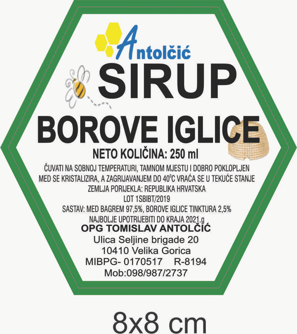 1596 – Antolčić Tomislav – 057-Sirup BOROVE IGLICE 450 gr – 8×8 cm