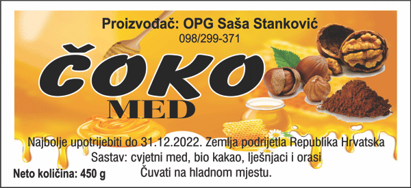 2 zabilježene narudžbe za: 2029 – OPG Saša Stanković – 004-ČOKO MED -105×48 mm – 0,33 kn kom